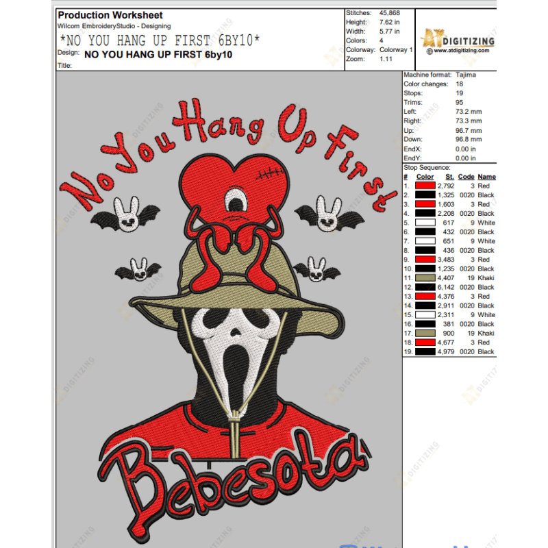 Bad Bunny Halloween Embroidery Designs Product Details: