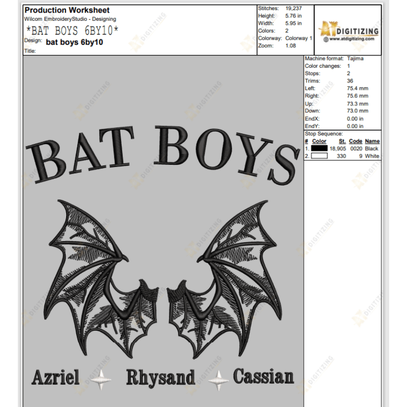 Bat Boys Halloween Embroidery Designs Product Details: