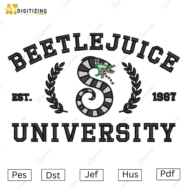 Beetlejuice University Snake Embroidery Design
