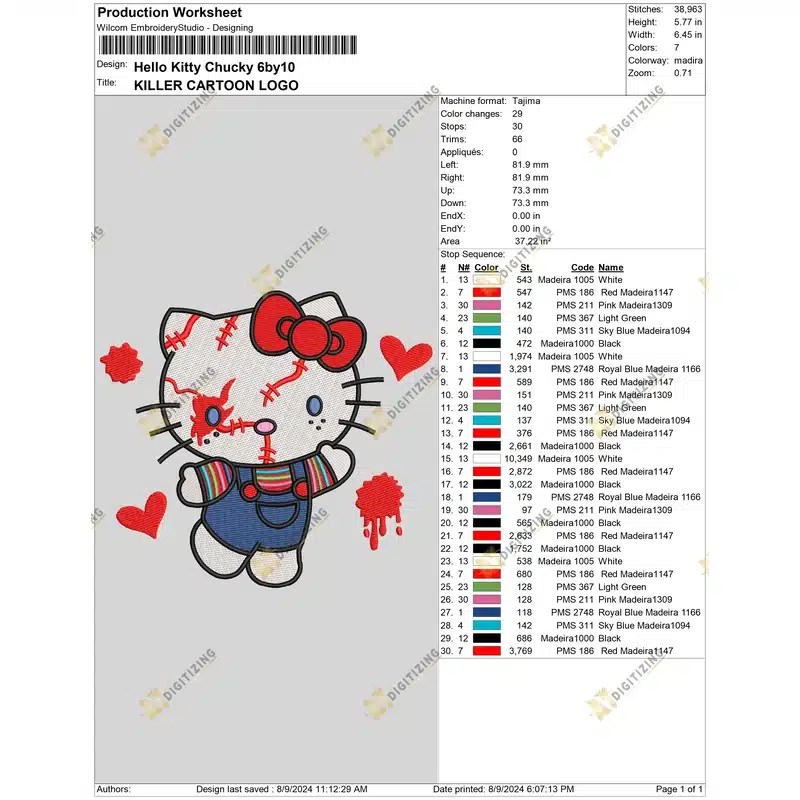 Chucky X Hello Kitty Embroidery Design