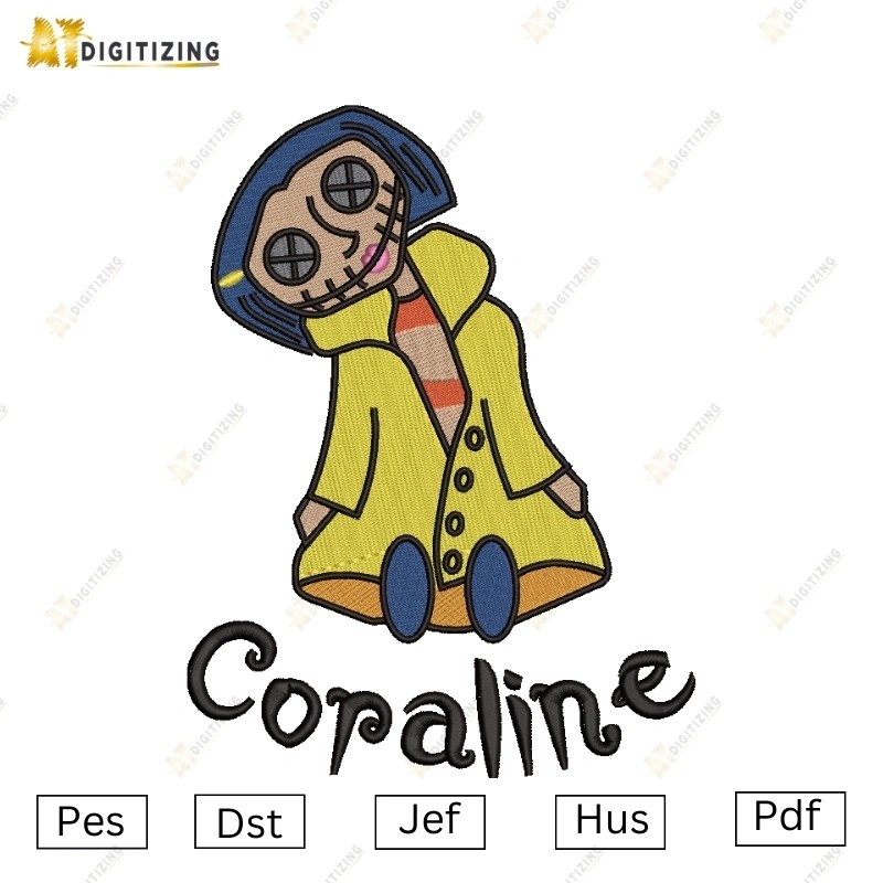 Coraline Doll Button Eyes Embroidery Design Product Details: