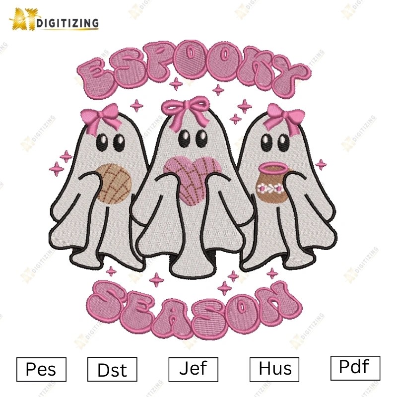 Espooky season ghost Conchas Embroidery design- PES, DST, JEF Product Details: