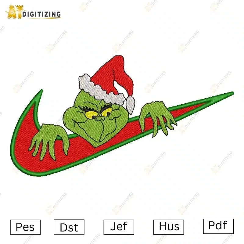 Grinch swoosh Christmas Embroidery Design- PES,DST,JEF Product Details: