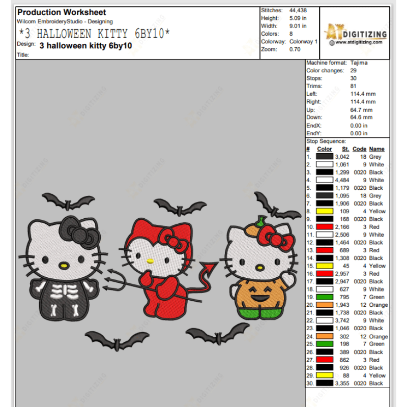 Halloween Hello kitty Embroidery Designs – Dst, Pes, Jef