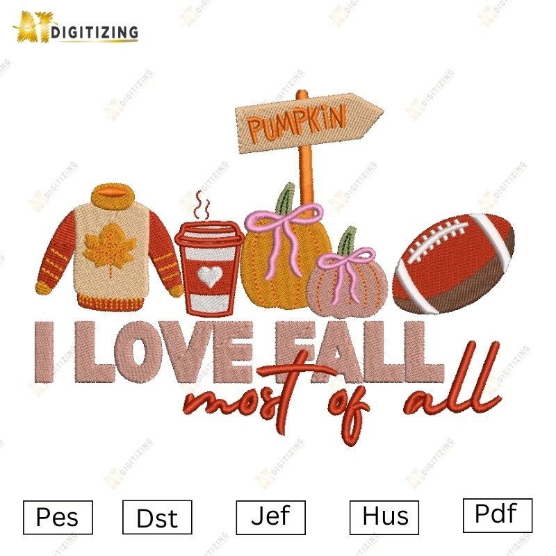 I Love Fall Thanksgiving Embroidery Designs Product Details: