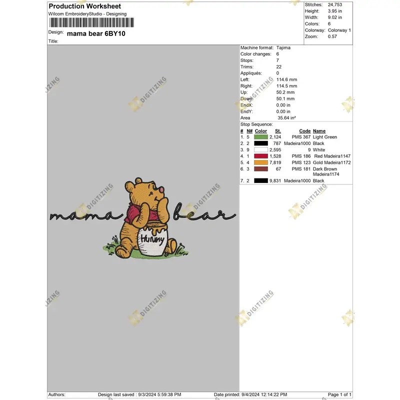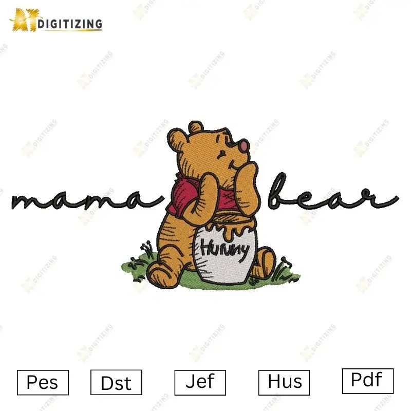 Mama Bear Pooh Hunny Embroidery Design Product Details: