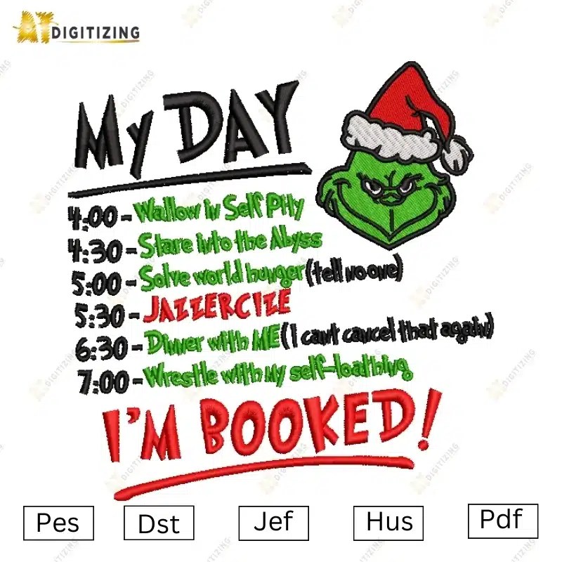 My Day I’m Booked Grinch Christmas Embroidery Design v3 Product Details: