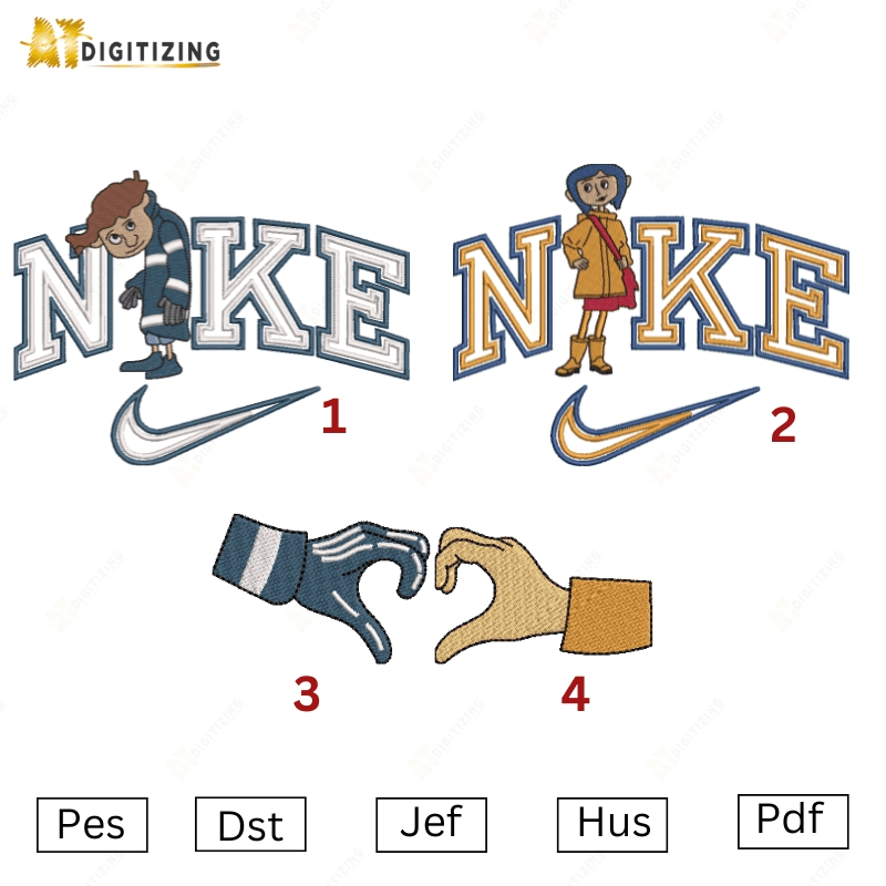 Nike Coraline X Nike Wybie Embroidery Designs with sleeves