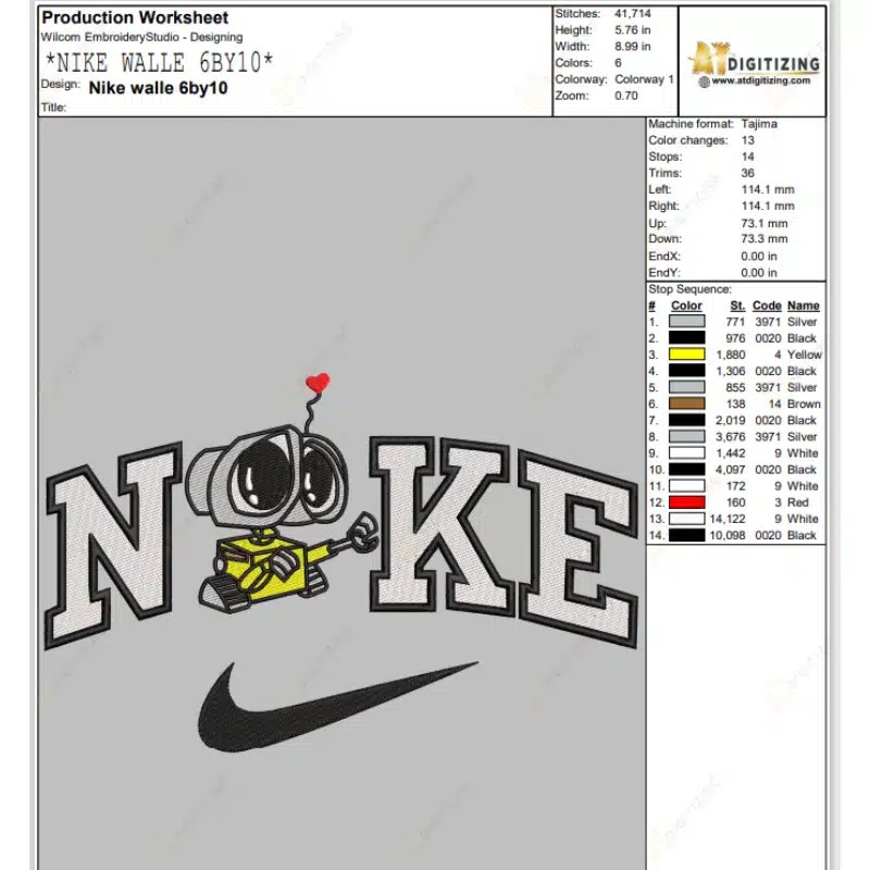 Nike Eve X Nike Wall E Embroidery Design , Eve and Walle Product Details: