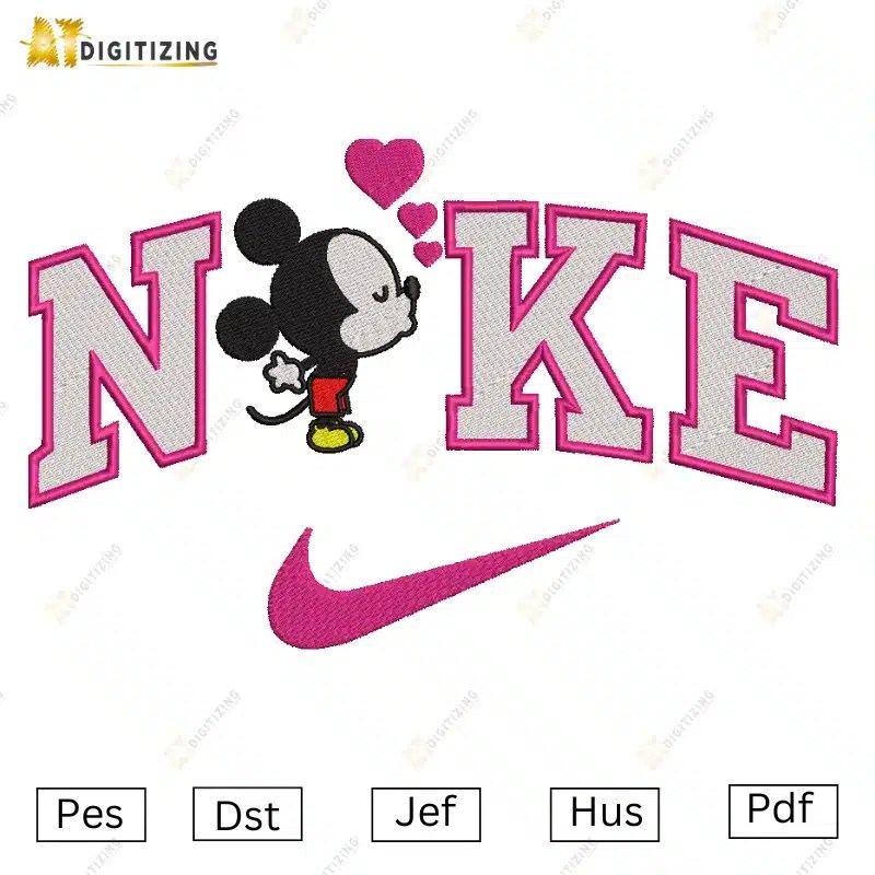 Nike Mickey Heart Embroidery File Product Details: