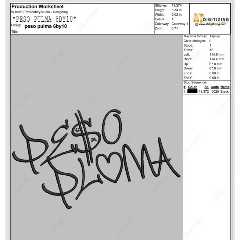 Peso Pluma Machine Embroidery File, Peso Embroidery Design Product Details: