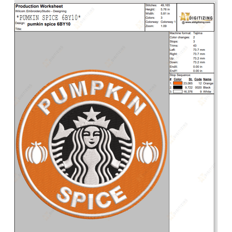Pumpkin Spice Starbucks Halloween Embroidery File Product Details: