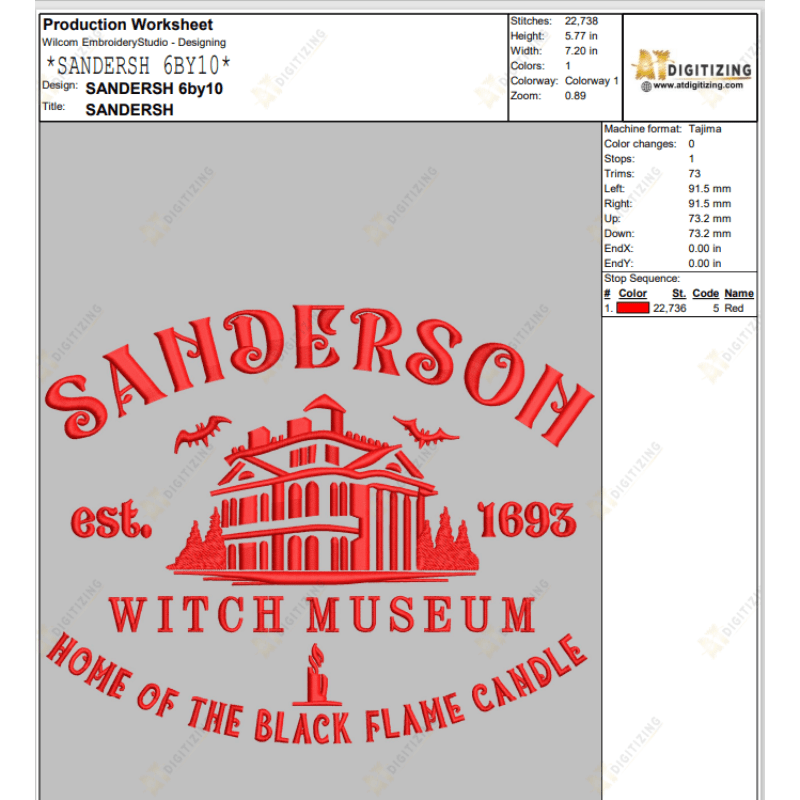 Sanderson Witch Museum Embroidery design – Dst, Pes, Jef