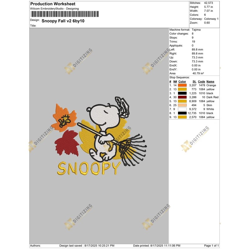Thank you for showing interest in our Snoopy Fall v2 Halloween Embroidery design