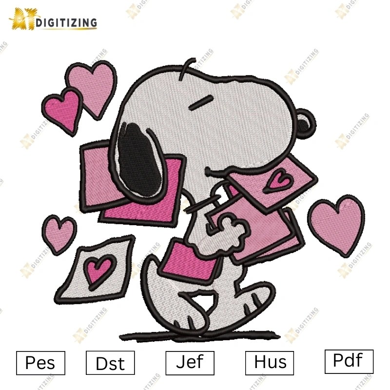 Thank you for showing interest in our Snoopy Hugging Love Letters with Hearts Valentine Embroidery Design.