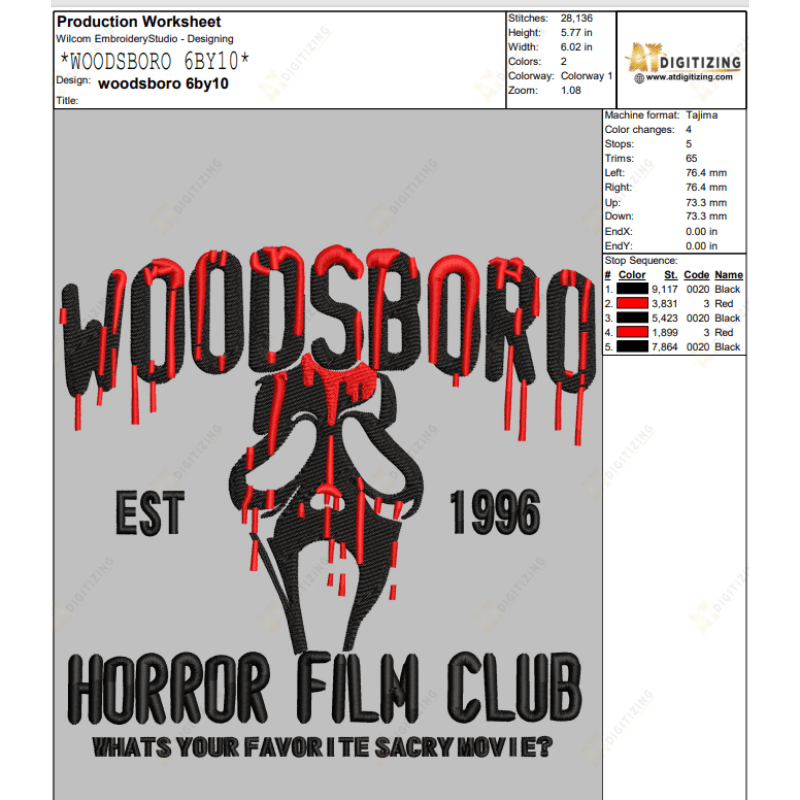 Woodsboro Horror Film Club Embroidery Designs Product Details: